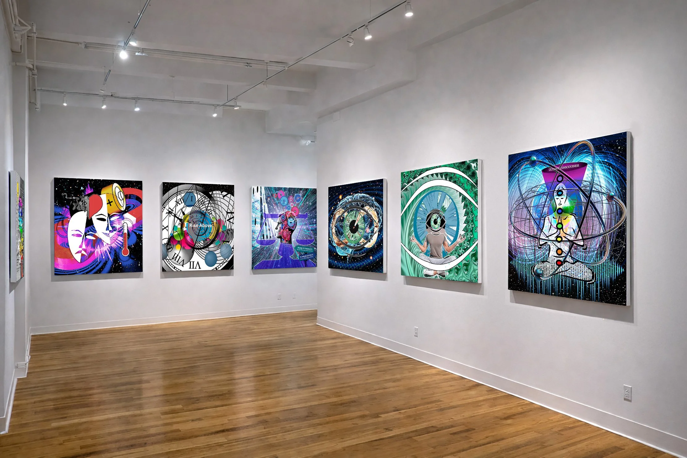 Modern life pulls attention outward—toward noise, urgency, and distraction. Hermetic philosophy pulls attention inward—toward responsibility, awareness, and lawfulness. These artworks are bridges between those worlds. They combine cosmic imagery, psychological symbolism, scientific motifs, and bold graphic language to make invisible principles visible.