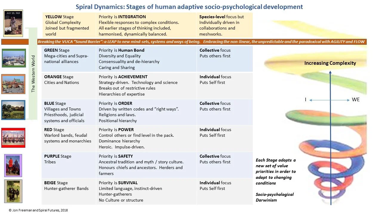 On the surface, you are you and I am me—distinct individuals with different histories, values, and beliefs. Yet when we zoom out, patterns begin to emerge. Spiral Dynamics offers a developmental map that helps explain how both individuality and unity can coexist within an evolving system of human consciousness.